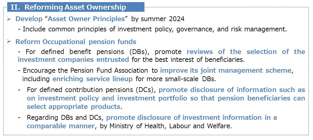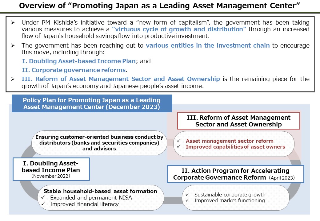 The Government of Japan has published "Policy Plan for Promoting Japan as a Leading Asset Management Center", with the aim to reform Japan’s asset management sector and asset ownership.