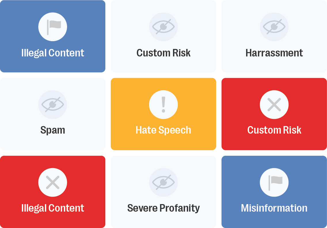 Identify and eliminate harmful content including hate and abuse, illegal and offensive content, spam, scams and more, with 100+ classifications designed to fit your brand needs in 50+ languages. Fast and informed moderation, designed for every day peace of mind and high-pressure situations.