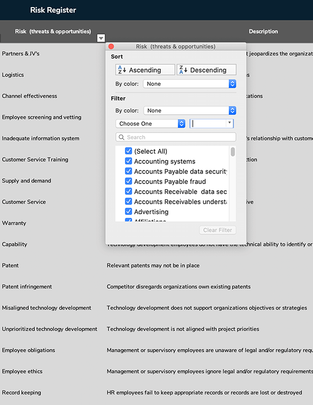 - Access a robust list of over 250 risks impacting organizations, conveniently categorized by industry and department. It's not just a list; it's a strategic asset.